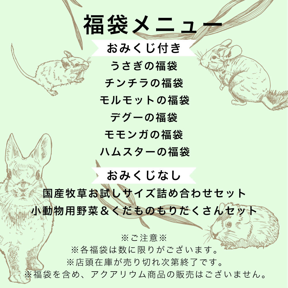 ・うさぎの福袋・チンチラの福袋・デグーの福袋・モルモットの福袋・ハムスターの福袋・モモンガの福袋